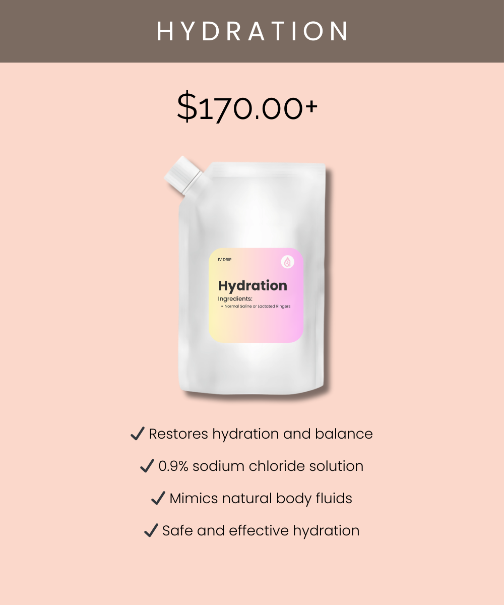 Prices range from $150 upward depending on the specific drip. We offer package deals for frequent clients.